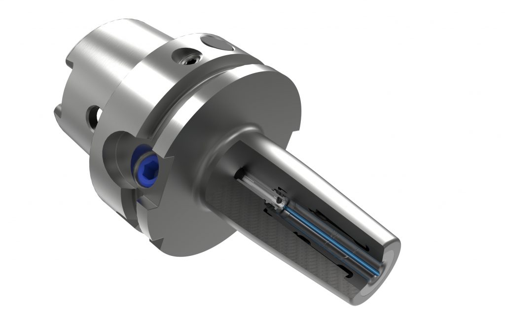 Mit der Option DirectCool wurde das UNIQ-Portfolio nun um eine entscheidende Funk-tion erweitert. Bei DirectCool handelt es sich um ein dezentrales Kühlsystem, das durch drei Kühlkanalbohrungen entlang des Werkzeugschafts eine präzise Kühlung bis an die Werkzeugschneide ermöglicht. So erreichen die Hydrodehnspannfutter eine gleichmäßige Temperaturverteilung, reduzieren thermische Verformung und Verschleiß, erhöhen die Standzeit des Werkzeugs deutlich und ermöglichen eine konstante Bearbeitungsqualität. Gleichzeitig verbessert die Spülwirkung die Prozesssicherheit und die Oberflächenqualität, da Späne effektiv abgeführt werden. Besonders bei Bohrprozessen, bei denen sich Späne um das Werkzeug wickeln können, sorgt DirectCool für eine zuverlässige Kühlung und verhindert Werkzeugbruch.