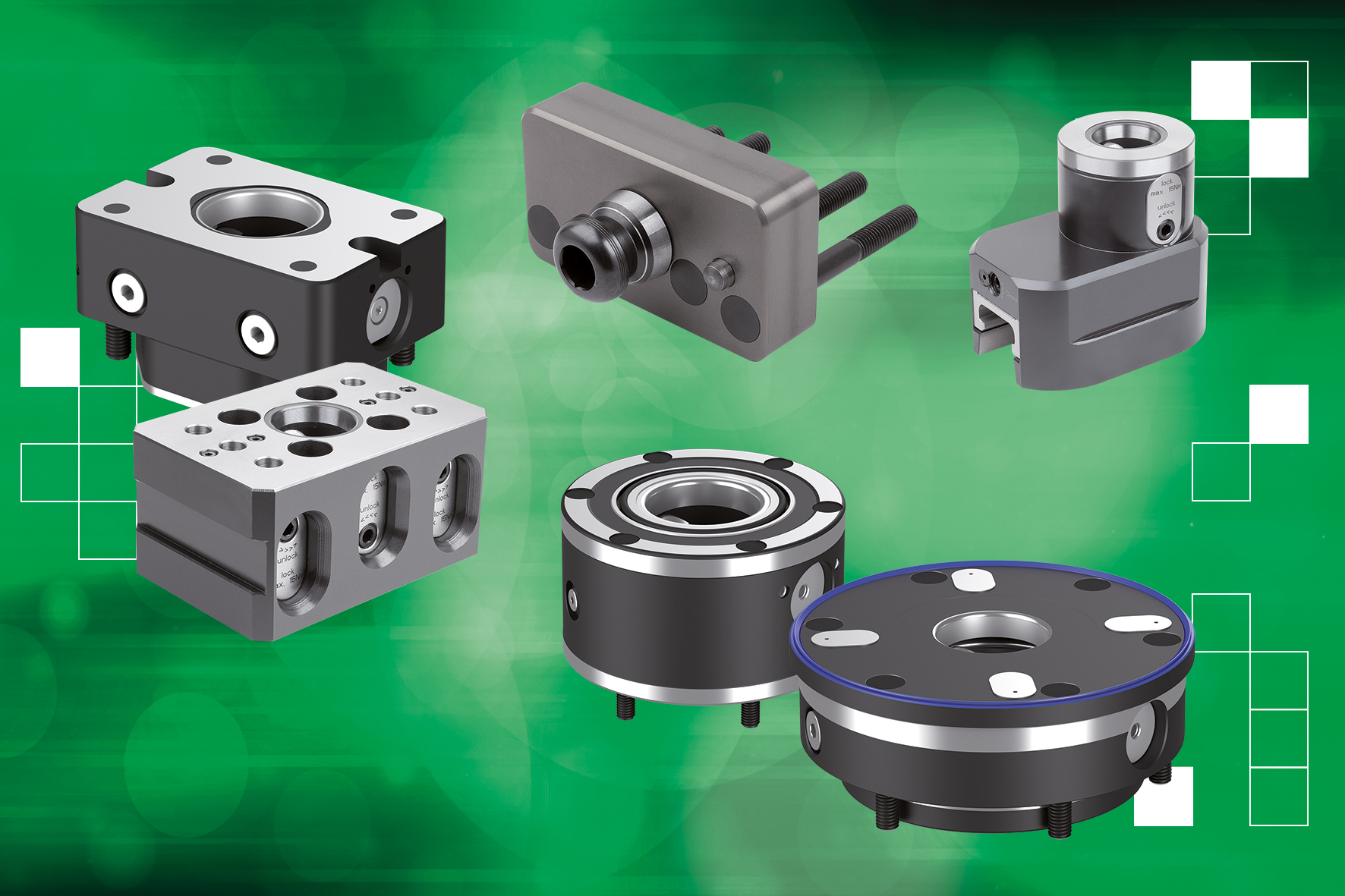 Nullpunkt-Spannsysteme setzen einen festen Referenzpunkt, von dem aus Werkstücke präzise und wiederholgenau positioniert und fixiert werden. Da die erneute Ausrichtung entfällt, verkürzen sich Rüstzeiten und die Produktivität steigt. Außerdem verfügbar: 5-Achs-Modulspannsysteme in den Größen 80 und 50, mit denen sich Objekte verschiedener Geometrien, Formate und Gewichte störkantenfrei von fünf Seiten bearbeiten lassen.