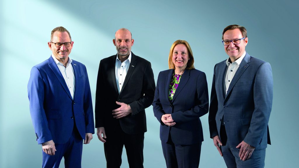 Der Vorstand der Tebis AG, v.l.n.r.: Robert Aulbur (CRO – Chief Revenue Officer), Jens Lüdtke (CSO – Chief Strategy Officer), Dr. Dagmar Mutter (CFO – Chief Financial Officer) und Reiner Schmid (COO – Chief Operating Officer) (Bild: Tebis AG)